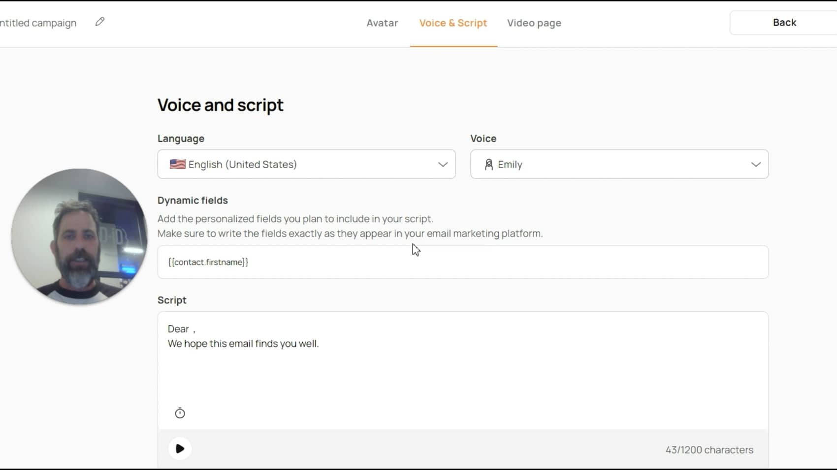 Once you’ve added your dynamic fields, it’s time to write the avatar script. To add a dynamic field to the script, simply click the field and it will be added.
